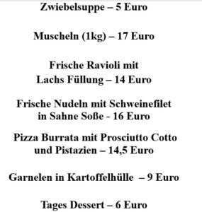 | Mittwoch, Donnerstag: | 11:30 – 14:00, 17:30 – 22:00 |
