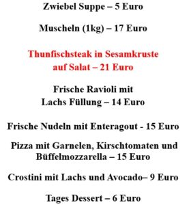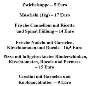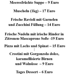 | Mittwoch, Donnerstag: | 11:30 – 14:00, 17:30 – 22:00 |
